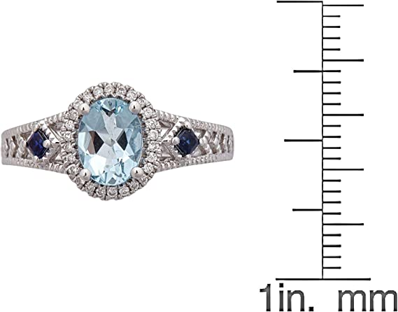 Gin and Grace 14K White Gold Genuine Aquamarine Ring with Diamonds for women | Ethically, authentically & organically sourced (Oval-cut) shaped Aquamarine hand-crafted jewelry for her | Aquamarine Rin