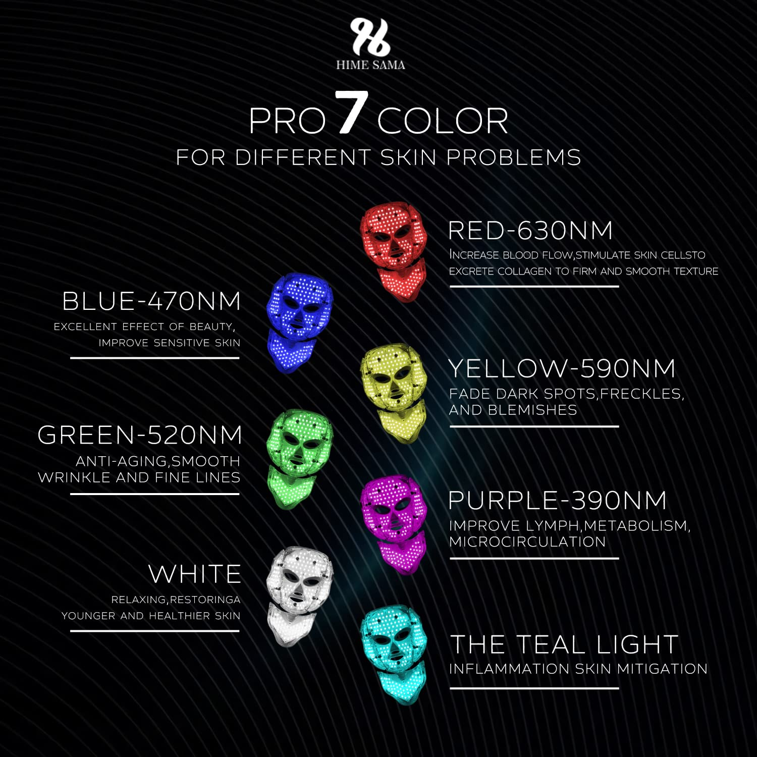 HIME SAMA LED Face Mask for Skincare - Pro 7 Color LED Skincare Mask, Delay Skin Aging, Maintain Skin Firmness and Elasticity, Professional Skin Care, Higher Safety,Portable for Home and Travel Use