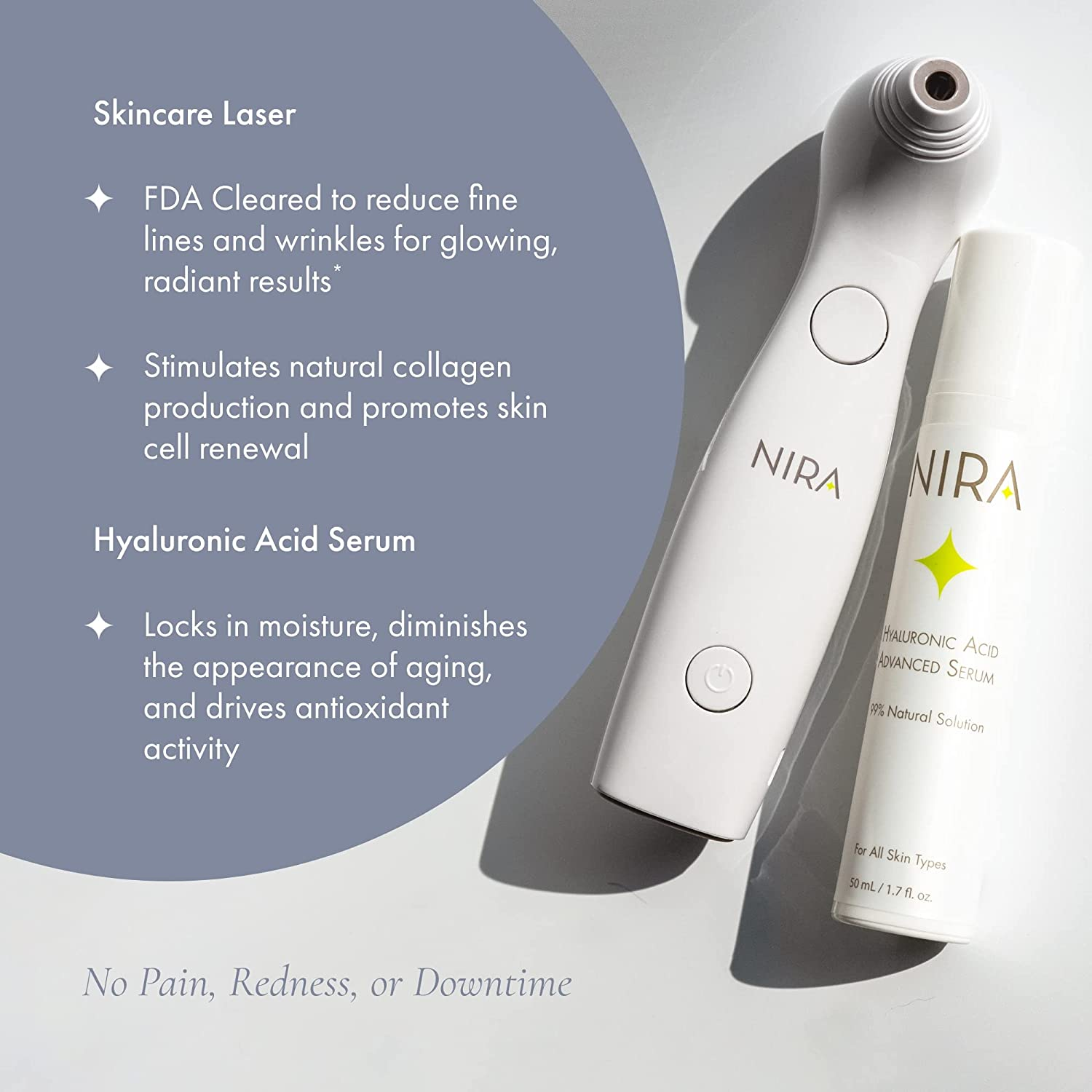 NIRA Skincare Laser & Hyaluronic Acid Serum Bundle, Reduces Fine Lines & Wrinkles, Advanced Anti-Aging Device For Home Use, FDA-Cleared, Clinically...