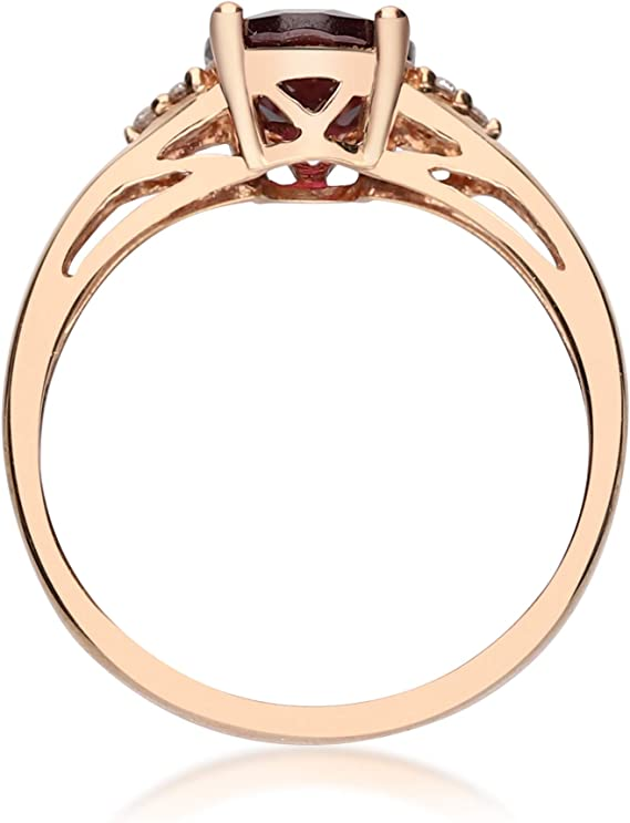 Gin & Grace 10K Rose Gold Purplish Pink Natural Garnet Diamond Ring (I1) with Daily Work Wear Jewelry for Women Gifts for Her