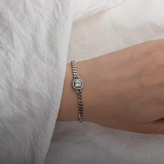 AnuClub Moissanite Cuban Bracelet,1ct D Color Lab Created Diamond 925 Sterling Silver Adjustable Bracelet With GRA Certificate