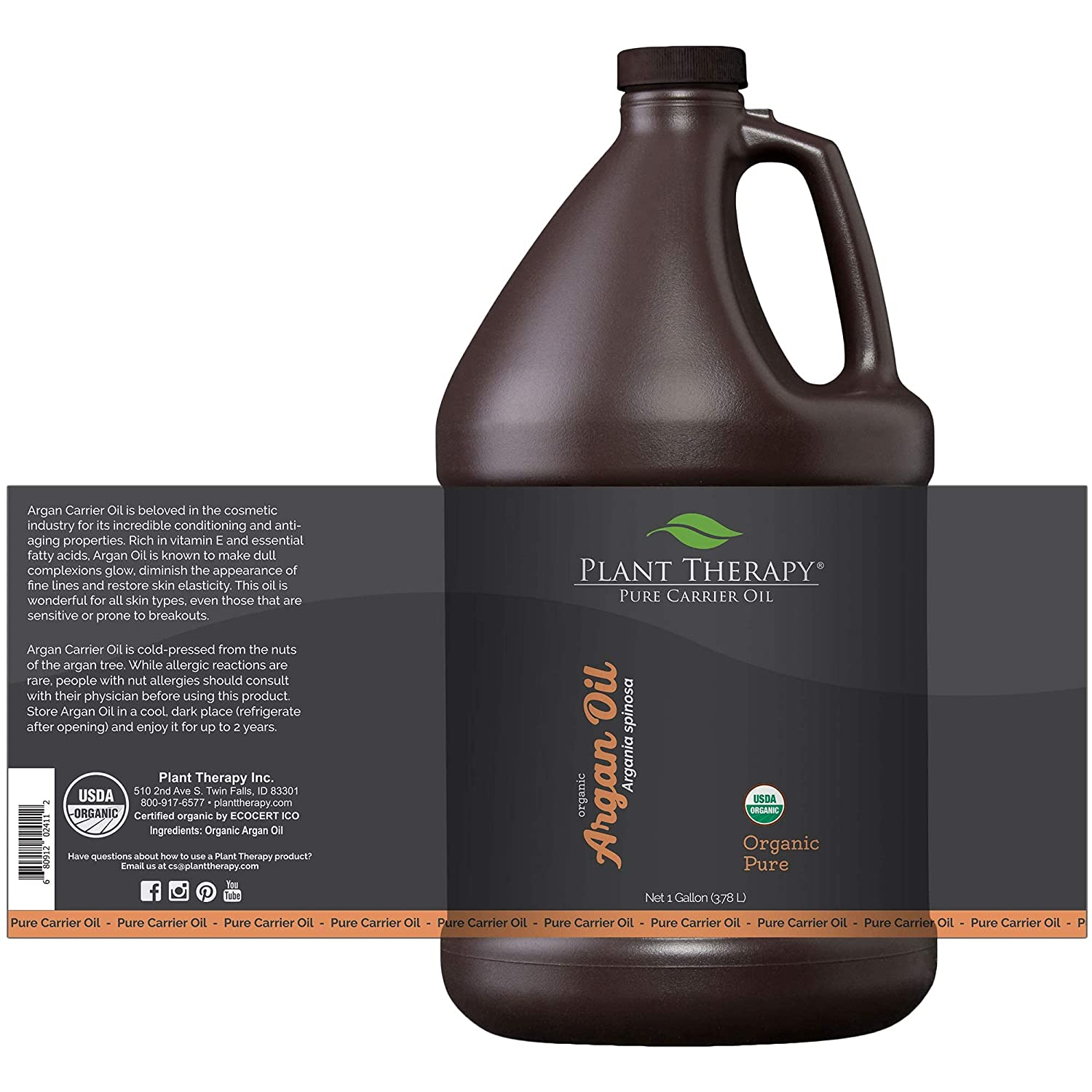Plant Therapy Organic Argan Oil, USDA Certified, First-Press, Virgin, For Face, Hair, Skin, Nails and Cuticles 1 Gallon