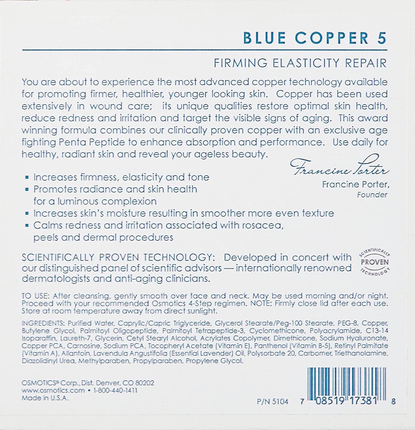 Osmotics Blue Copper 5 Firming Elasticity Repair, This Copper Peptide Anti aging Cream Boosts Skin Elasticity & Skin Radiance, Get Younger Looking Skin Today!